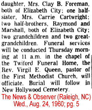 Elizabeth City, NC is serving the OXX family. (Twiford Funeral