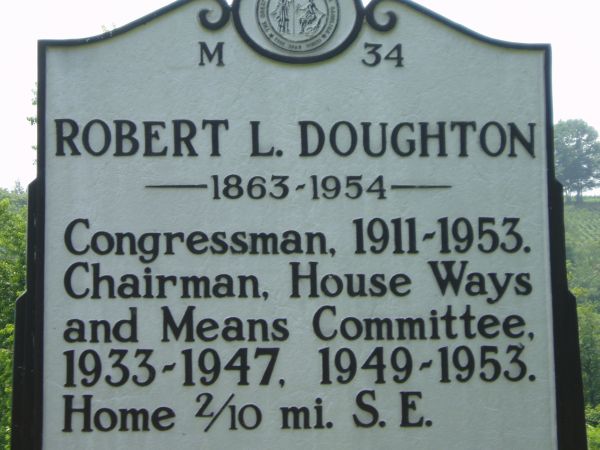 Robert Lee Doughton, powerful Congressman and advocate for western North Carolina, was born on November 7, 1863, to Jonathan Horton and Rebecca Jones Doughton. He was named for the Confederate general under whom his father served. Doughton was raised in the Laurel Springs community in Alleghany County and was educated at Laurel Springs School and Traphill Academy. A farmer by trade, Doughton began a career of public service with his appointment to the state Board of Agriculture in 1903. He served in the state Senate in 1908 and 1909.