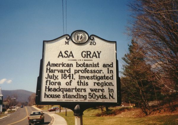 ID: M-20 Marker Text: ASA GRAY American botanist and Harvard professor. In July, 1841, investigated flora of this region. Headquarters were in house standing 50 yds. N. ~~~~~ Location: NC 88/US 421 in Jefferson County: Ashe Original Date Cast: 1949-P ~~~~~