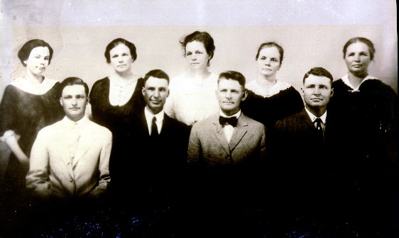 Photograph taken in 1916. The nine sons and daughters of ANDREW McMILLAN HALSEY and SUSAN FRANCES WYATT. Seated: Andrew Frank Halsey, Joseph Horn