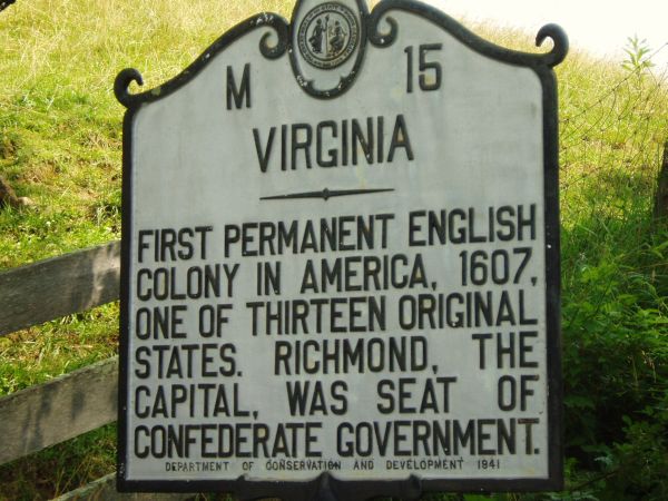 Marker Text: NORTH CAROLINA-VIRGINIA NORTH CAROLINA / Colonized, 1585-87, by first English settlers in America; permanently settled c. 1650; first to vote readiness for independence, Apr. 12, 1776 b/w VIRGINIA / First permanent English colony in America, 1607, one of thirteen original states. Richmond, the capital, was seat of Confederate government. Essay: M-15 NORTH CAROLINA-VIRGINIA Virginia and North Carolina boast the sites of the earliest English settlements in what would become the United States. The Roanoke colonies (1585-1587) are commemorated at Fort Raleigh in Dare County, North Carolina. The first permanent settlement of English colonists in the New World took hold in Jamestown, Virginia, in 1607, when three ships landed with 105 settlers. Famine and disease took a toll on the small settlement. Despite the trials of the first year, the colonists began to thrive with the influx of supplies and new arrivals from England. By 1619, settlers in Jamestown organized their government and the first colonial legislature held session. The colony prospered principally on the export of tobacco. Virginia and North Carolina’s early settlers were intermingled, particularly in North Carolina’s northeastern or Albemarle region, where colonists trickled down in search of good land to grow crops and establish homesteads beginning around 1650. Because many colonists easily traveled back and forth between the two, the border between North Carolina and Virginia was vague under it was first surveyed by Virginian William Byrd in 1728. Byrd and other surveyors defined the line from the coast as far westward as modern Stokes County, about 240 miles. The survey of the boundary between the two colonies was completed in 1749 when Thomas Jefferson’s father, Peter, began in Stokes County and completed the survey to what is now Ashe County. The borders were often disputed and additional surveys have been called to settle claims, the most notable in 1887, when the two states sponsored another joint boundary survey. Virginians established their first capital at Williamsburg. Following the Revolutionary War and the surrender of Cornwallis at Yorktown, the capital was relocated inland to Richmond. That city later served as the capital of the Confederacy during the Civil War and suffered greatly as a result of fires that consumed much of the city as it fell to Union occupation. North Carolinians have always had a distinct reputation for being different from her neighbors to the north and south. That reputation was lent credence after publication of William Byrd’s journals. While surveying the boundary line, the aristocratic Byrd kept a journal of observations about North Carolina and her residents, considering them lazy and without religion. However, despite Byrd’s opinion, the two states share a common past related to colonial migration, the development of tobacco, old-time music, and familial ties. In fact, many residents of northeastern and piedmont North Carolina still work and shop in the cities of southern Virginia such as Norfolk, Newport News, Roanoke, and Danville. References: William S. Powell, North Carolina Through Four Centuries (1989) William K. Boyd, ed., William Byrd’s Histories of the Dividing Line Betwixt Virginia and North Carolina (1984) Bill Sharpe, A New Geography of North Carolina (1954-1965) Virginius Dabney, Virginia: The New Dominion (1992) Virginia History: http://www.virginia.gov/cmsportal2/facts_and_history_4096/index.html ~~~~~