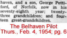 Mr. George Tilman Spencer, age 80, a resident of 1408 Hoff Road, Belhaven died Thursday, November15, 2007 at his home. A memorial service will be held 2:00 pm on Sunday November 18, 2007 at Pantego Christian Church in Pantego officiated by Rev. James Bussell. Mr. Spencer was born in Beaufort County on February 13, 1927 to the late Harold Tilman Spencer and the late Myrtie Gertrude Martin Spencer. On November 16, 1954 George married Rae Gaskins who survives. Mr. Spencer served his country in the United States Navy during World War II. After his discharge, he later worked for many years as a farmer. Mr. Spencer was a member of Pantego Christian Church and was a friend of “Dr. Bob” and Bill Wilson. In addition to his wife, survivors include three sons: Robert H. Spencer of St. Joseph, Missouri, Hoyt T. Spencer of the home, “Tim” R. Spencer and his wife Sissy of Bath; one granddaughter: Alicia Spencer Wagaman and her husband Willie of Washington; one grandson: Nathan H. Spencer of Greenville; and two great granddaughters: Kayla Wagaman, Jordan Wagaman. In addition to his parents, Mr. Spencer was preceded in death by three brothers: Gene Richard Spencer, Clyde Bonner Spencer, Fredrick H. Spencer, and one sister: Susan Spencer Collins. The family will receive friends following the memorial service at the church. Paul Funeral Home of Belhaven is serving the Spencer family. (Paul Funeral Home obituary posted Friday, November 16, 2007)