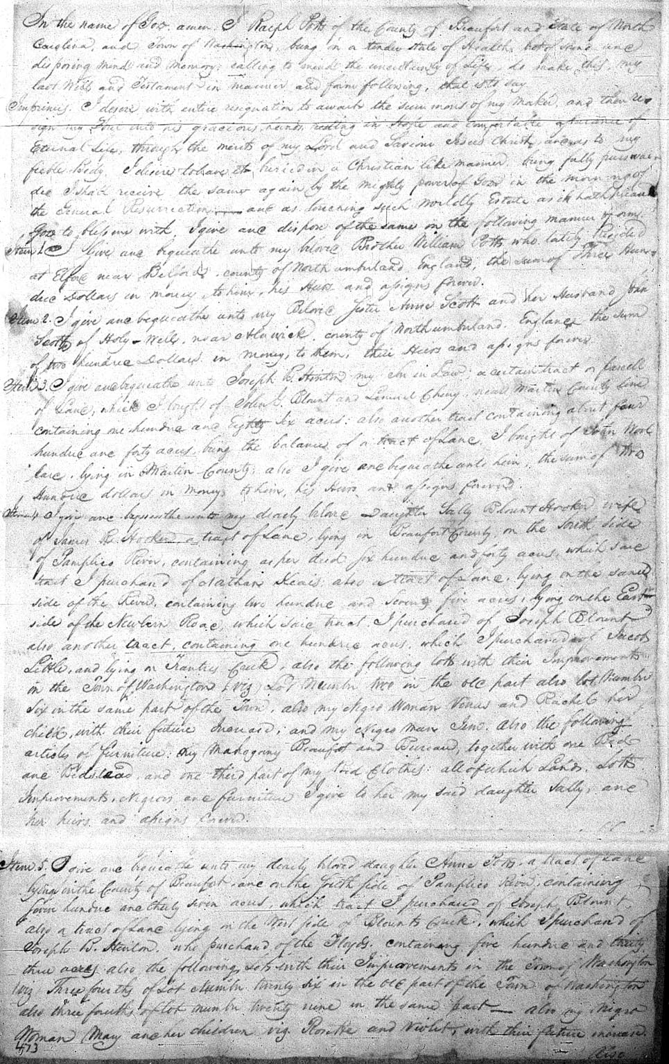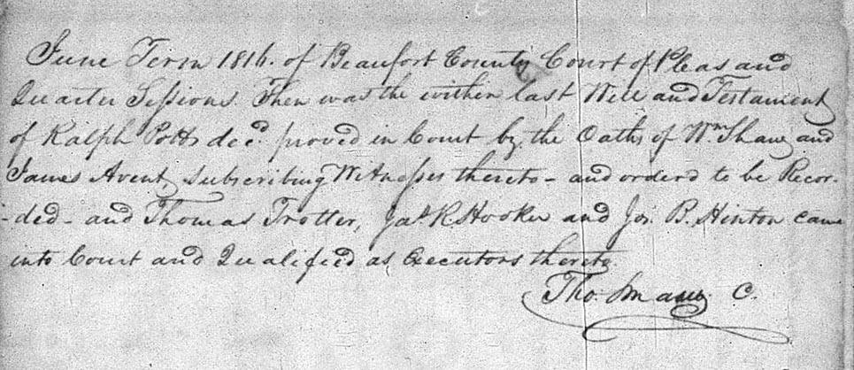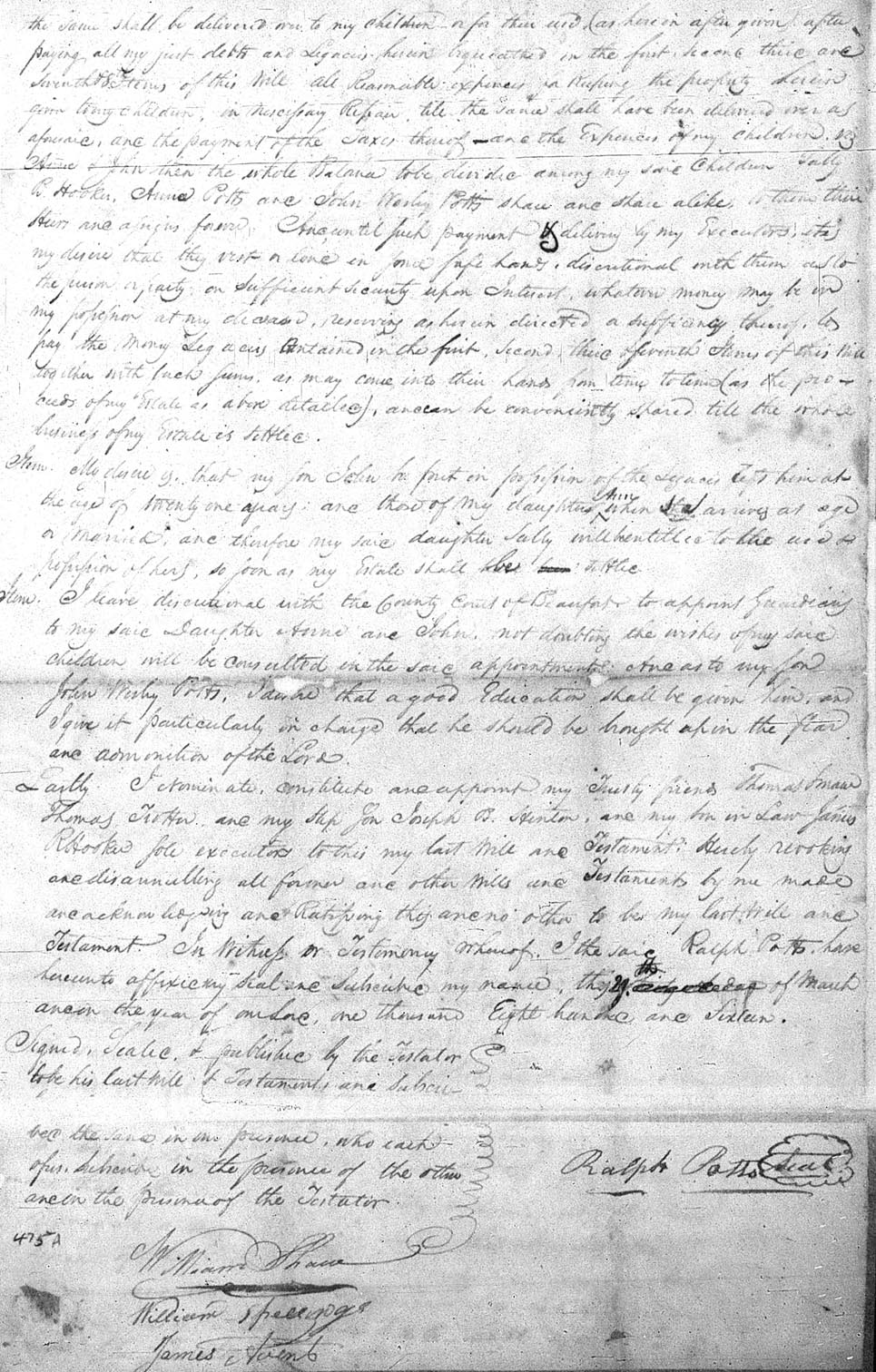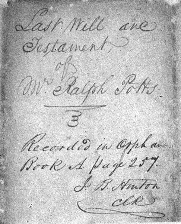 Ralph Potts Date written: March 29, 1816 - Probate: June Term 1816 Orphan Book Bk. A; pgs. 257-259