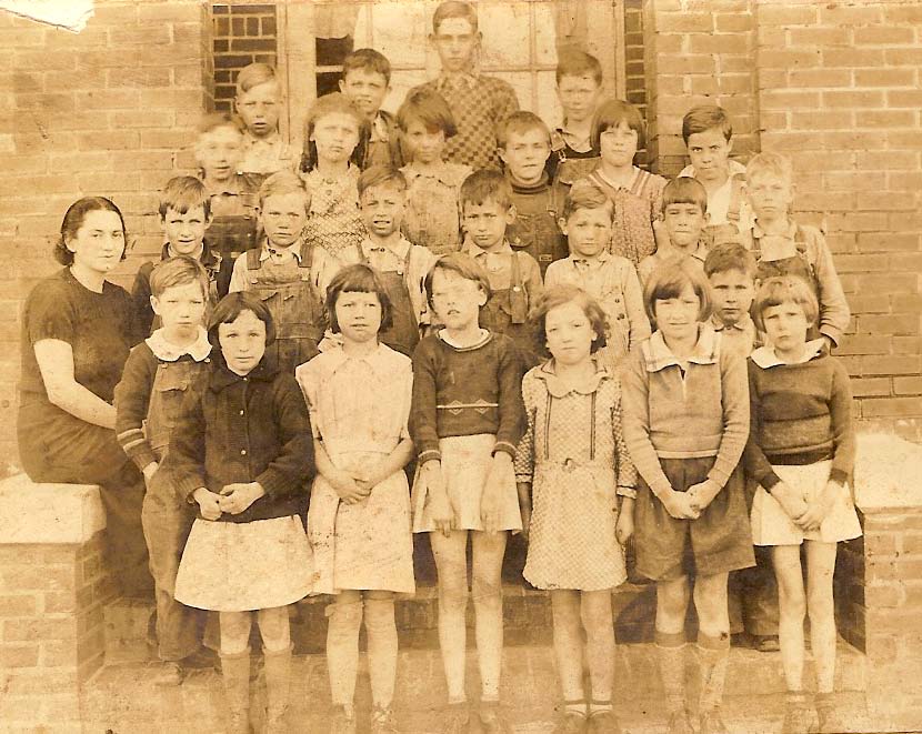 This is a picture of the 1st and 2nd grade at the old Abbotsburg school. It was taken around the early to mid 1930's. The building burned sometime near the mid 1940's. Some of the children are identified in the revised photo below.