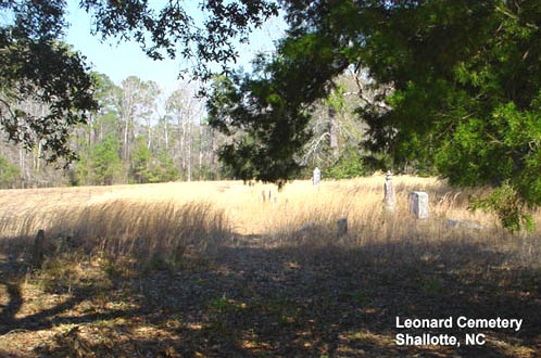 | Leonard Cemetery Contributed by Jeanie Simmons Higgs & Vicki Stamey June 2002 Brunswick County, North Carolina ![]() |