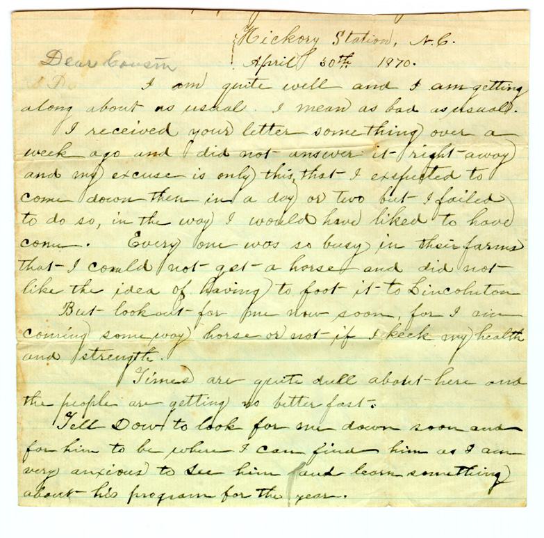 On to Gideon's letter posted from Happy Home, (Connelly Springs)