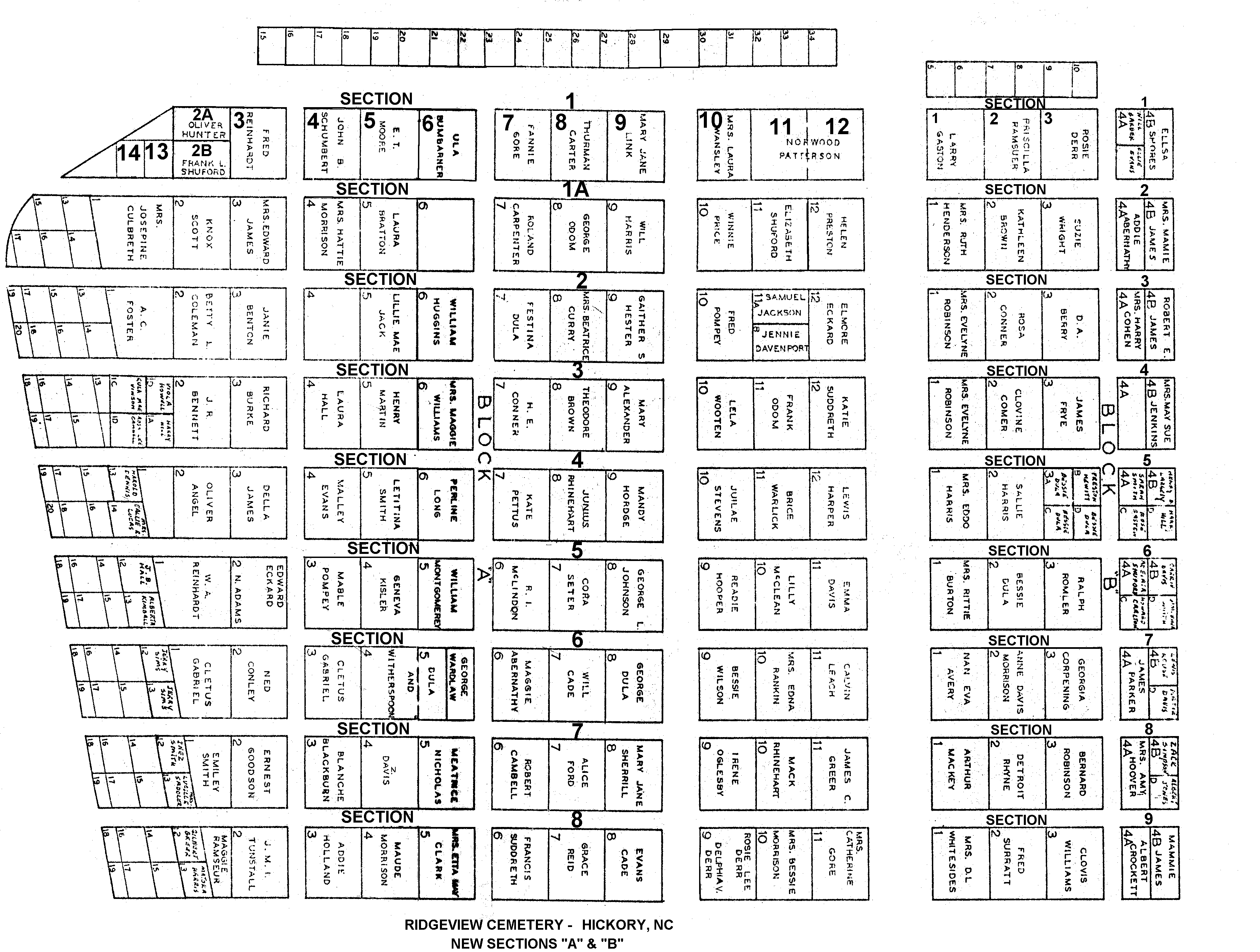 Ridgeview Cemetery, Hickory (A-A) - MAP (complete to 1999)