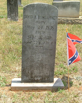 BUMGARNER, DAVID A., Private, Co. C, 28th Regiment, NC Troops - Resided in Catawba County where he enlisted on March 15, 1862. Captured at Hanover Court House, Virginia, May 27, 1862. Confined at Fort Monroe, Virginia, and at Fort Columbus, New York Harbor. Exchanged at Aiken's Landing, James River, Virginia, August 5, 1862. Returned to duty prior to November 1, 1862. Wounded at Chancellorsville, Virginia, May 1-3, 1863. Returned to duty on an unspecified date. Wounded in the back and captured at Gravel Hill, Virginia, July 28, 1864. Confined at Point Lookout, Maryland. Paroled and transferred to Boulware's Wharf, James River, Virginia, March 18, 1865, for exchange. [NCT-8:141]
