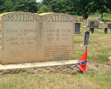 CLINE, LABIN WILSON, Private - Enlisted in Catawba County at age 17, March 10, 1864, for the war. Present or accounted for until reported absent wounded on company muster roll dated May 1-August 31, 1864; however, battle in which wounded not reported. Reported absent wounded through December, 1864. North Carolina pension records indicate he was wounded in July, 1864. Other records indicate he was wounded at Spotsylvania Court House, Virginia; at Strasburg, Virginia; and at Appomattox Court House, Virginia. [NCT-5:175-6]