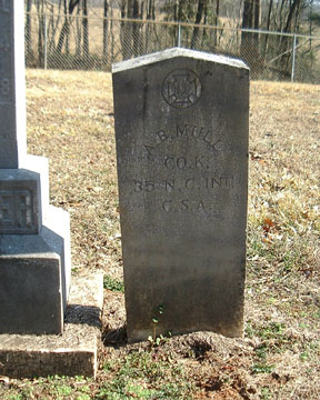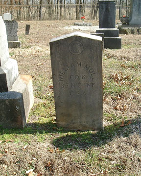 MULL, ABEL BURTON, Private, Company K, 35th Regiment, NC Troops- Resided in Catawba County where he enlisted at age 29, August 14, 1862, for the war. Reported present during November, .1864-February, 1865. Captured at or near Fort Stedman, Virginia, March 25, 1865. Confined at Point Lookout, Maryland, until released on June 29, 1865, after taking the Oath of Allegiance. [NCT-9:457]