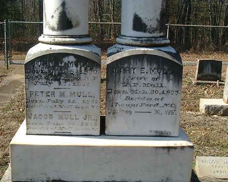 MULL, JOHN M., Private, Company F, 55th Regiment, NC Troops - Born in Catawba County* where he resided as a farmer prior to enlisting in Cleveland County at age 32, May 3, 1862, for the war. Mustered in as Private. Reported present in June, 1862. Appointed Musician prior to September 1, 1862. Reduced to ranks in January-October, 1863. Captured at Wilderness, Virginia, May 5, 1864. Confined at Point Lookout, Maryland, May 17, 1864. Transferred to Elmira, New York, July 27, 1864. Died at Elmira on June 20, 1865, of "chro[nic] diarrhoea." [NCT-13:492/P325]