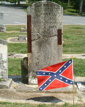 CARPENTER, WILLIAM D., Sergeant, Resided in Lincoln County where he enlisted at age 32, May 23, 1861. Mustered in as Private and was promoted to Corporal in May, 1862. Promoted to Sergeant in December, 1862. Present or accounted for until killed at Gettysburg, Pennsylvania, July 1, 1863. [NCT-7:156]