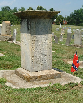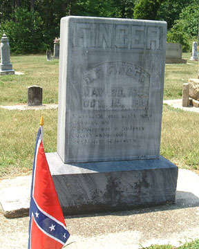 FINGER, FRANKLIN CROOKS. Enlisted as a Private in Co. K, 16th Regiment, NC Troops (no record). Franklin was born 7 October 1847 in Lincoln County, NC. He was younger than the minimum enlistment age but enlisted anyway, probably lying about his age. He died on 12 February 1865 "from a disease contracted in the army" according to his grave stone. His age was stated as "17 yrs 4 mos & 5d." His gravestone was shared with two of his brothers, Monroe Peter Finger and Robert Pinkney Finger. Another brother, Major Sidney M. Finger, who served in the CSA, was buried at Eastview Cemetery in Newton, NC. [Southern Finger Family]