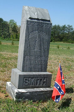 SMITH, JOHN S., Private - Born in Lincoln County and resided in Catawba County where he was by occupation a farmer prior to enlisting in Cleveland County at age 35, May 10, 1862, for the war. Discharged on May 28, 1862, by reason of being overage. Reenlisted in the company on June 23, 1862, as a substitute for C. C. Atwater. Wounded in the hand at Gettysburg, Pennsylvania, July 1, 1863. Hospitalized at Richmond, Virginia, July 14, 1863, with chronic diarrhoea. Transferred to hospital at Danville, Virginia, July 24, 1863. Returned to duty on an unspecified date. Wounded at Wilderness, Virginia, May 5, 1864. Hospitalized at Charlotte on June 2, 1864. Returned to duty on July 12, 1864. Reported present in September-October, 1864. Survived the war. [NCT-13:494]