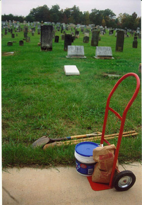 | This is how the marker arrived from the V.A. | This is all it takes to do the erect the stone. |