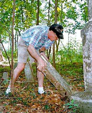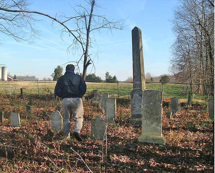 [John Cline walks amid the tumbled,broken and neglected stones] |