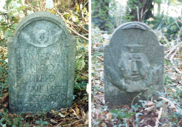 One gravestone depicting the Angel of Death marks the grave of James Robinson who died June, 1817. "I know that Matthew Wilson probably died sometime before 1790," said Hartshorn: "Most of the graves that are in this cemetery are family members, Robinsons and Wilsons." Hartshorn said he did not think any of the grave stones had been replaced.