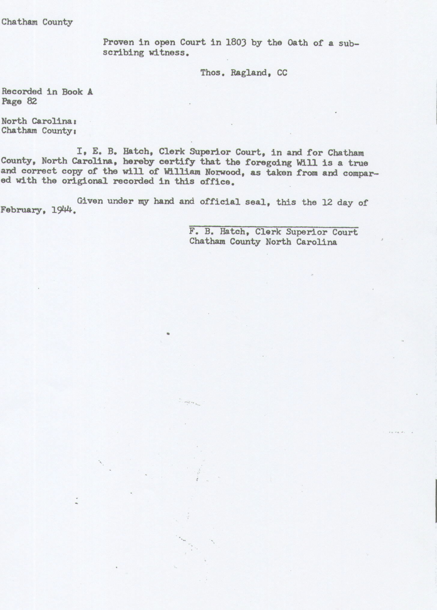 Will of WILLIAM NORWOOD, 1803