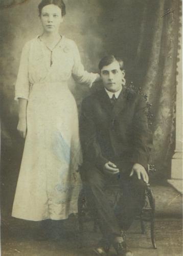 ![]() Dollie E King with husband John Franklin Mintz of Delco. Photo taken about 1915-1920 |