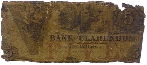 A Five-Dollar Bill c1850 - Bank of Clarendon