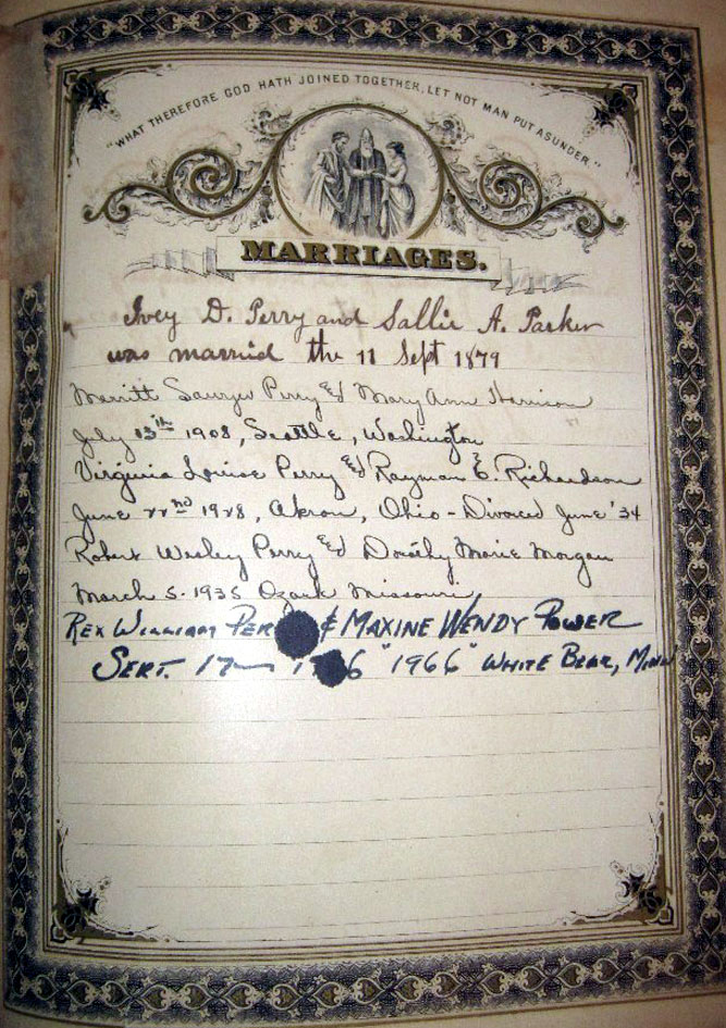 . No part of these records may be used for any commercial purposes. However, please feel free to copy any of this material for your own personal use and family research.This Bible was submitted by Rex Perry