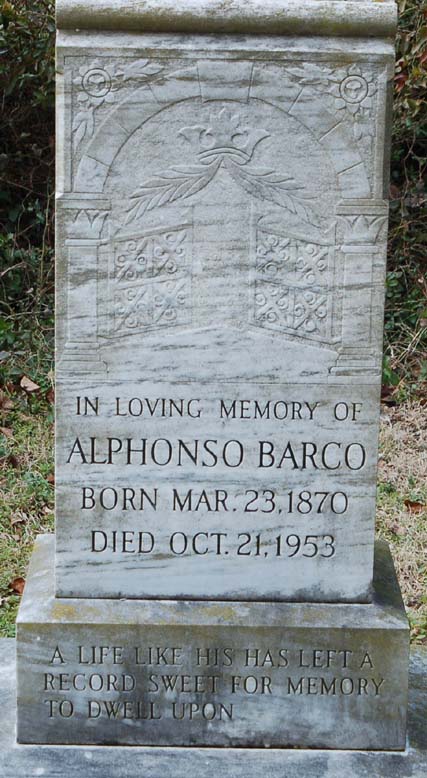 | Barco, Alphonso | Mar. 23, 1870 | Oct. 21, 1953 | In loving memory of - A life like his has left a record sweet for memory to dwell upon. |