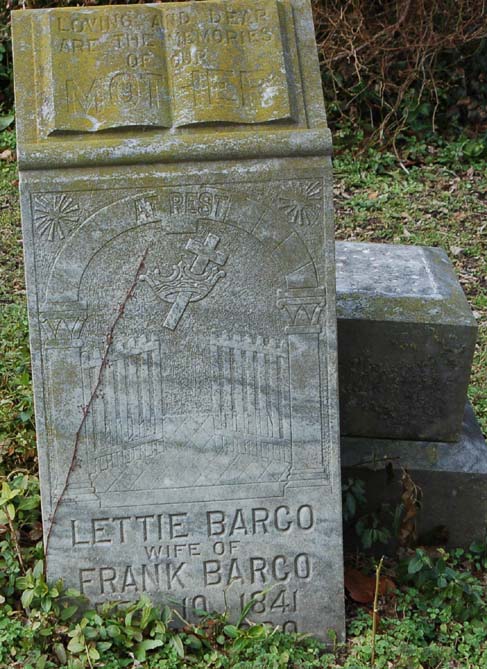 | Barco, Lettie | Feb. 10, 1841 | [June 5, 1930] | Loving and dear are the memories of our mother - Wife of Frank Barco [Longshot photo beside Frank Barco] |