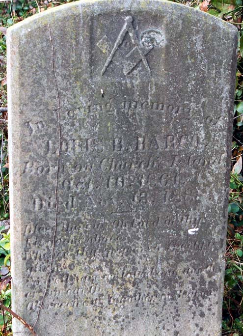 | Barco, Louis B. | Oct. 10, 1861 | Nov. 13, 1888 | In loving memory of - Born on Church's Island [Masonic Emblem] [Epitaph is unreadable] |
