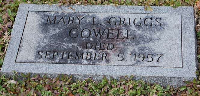 | Cowell, Mary L. Griggs | [Oct. 30, 1876] | Sept. 5, 1957 | [see death certificate] |