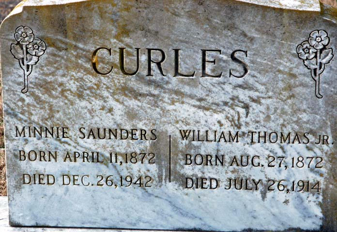 | Curles, Minnie Saunders | April 11, 1872 | Dec. 26, 1942 | [double with William Thomas Curles, Jr.] |