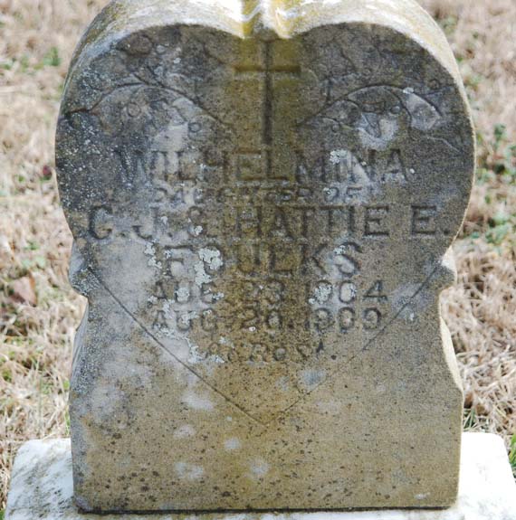 | Foulks, Wilhelmina | Aug. 23, 1904 | Aug. 20, 1909 | Daughter of C.J. & Hattie E. Foulks - At rest |