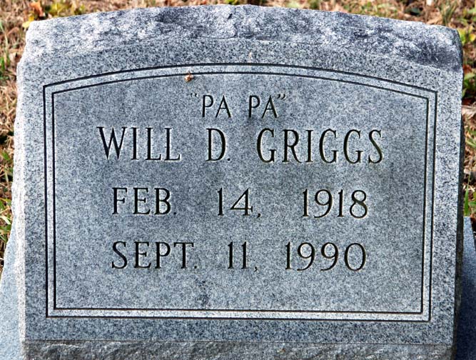 | Griggs, Will D. | Feb. 4, 1918 | Sept. 11, 1990 | "Pa Pa" |