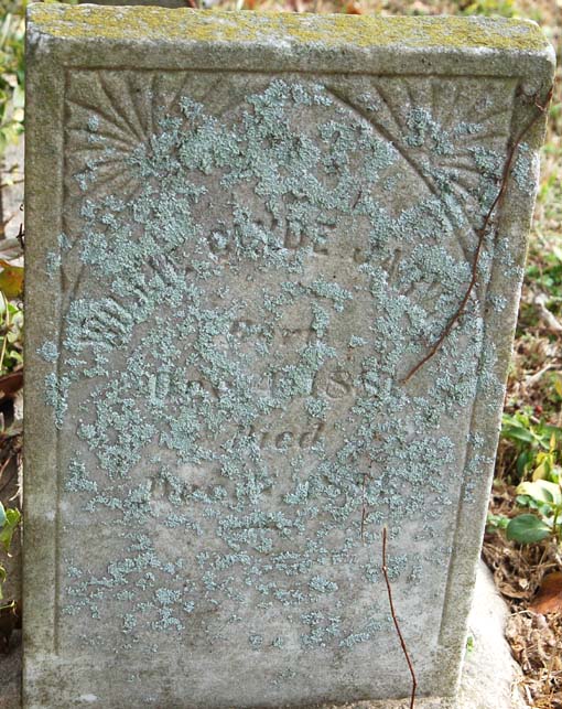 | Barco, Mollie H. | [Jan. 11, 1867] | [Oct. 1, 1871] | Sacred to the memory of - Daughter of B.F. & Lettie Barco - Born on Church's Island |