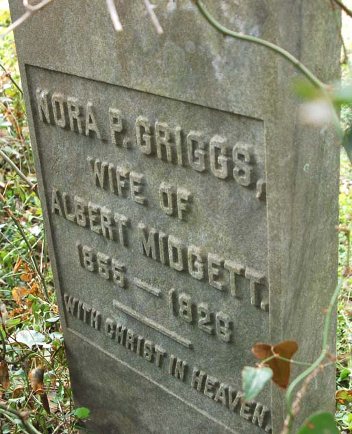| Midgett, Nora P. Griggs | 1855 | 1826 [sic] | Wife of Albert Midgett - With Christ in Heaven [Footstone] |