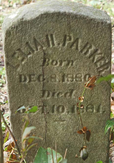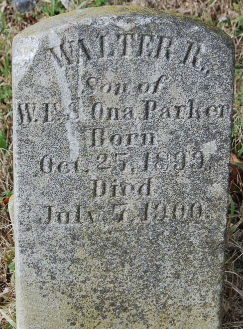 | Parker, Walter R. | Oct. 25, 1899 | July 7, 1900 | Son of W.F. & Ona Parker [Footstone] |