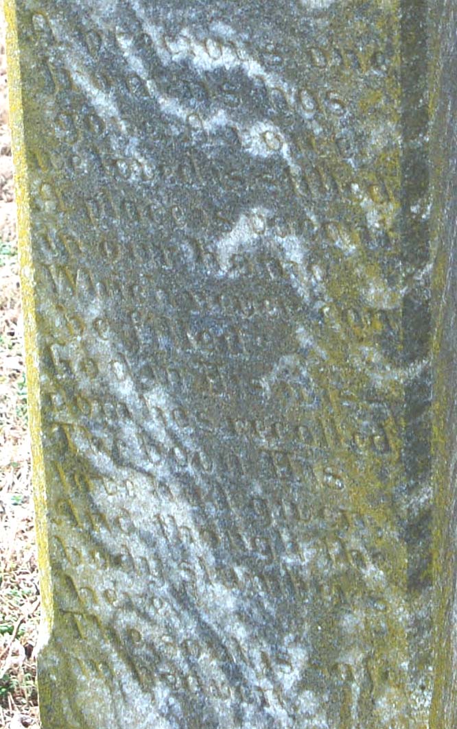 precious one from us has gone A voice we loved is stilled A place is vacant in our home Which never can be filled. God in His wisdom has recalled The boon his love had given And though the body slumbers here The soul is safe in Heaven. [Closeup] |