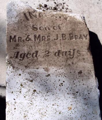 | Bray, Infant Son | [no dates] | [no dates] | Infant Son of Mr. & Mrs. J. B. Bray - Aged 2 days |