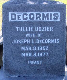 | DeCormis, Tullie Dozier | Mar. 8, 1852 | Mar. 8, 1877 | Wife of Joseph L. DeCormis -
