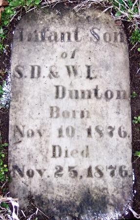 | Dunton, Infant Son | Nov. 10, 1876 | Nov. 25, 1876 | Infant son of S. D. & W. L. Dunton |