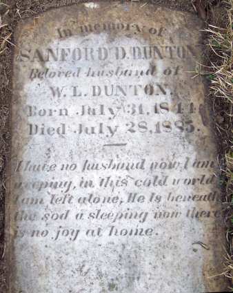 | Dunton, Sanford D. | July 31, 1844 | July 28, 1885 | Husband of W. L. Dunton |