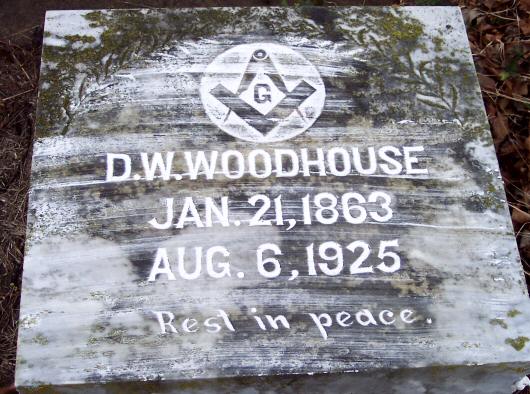 | Woodhouse, D. W. | Jan. 21, 1863 | Aug. 6, 1925 | Husband - Masonic Emblem |