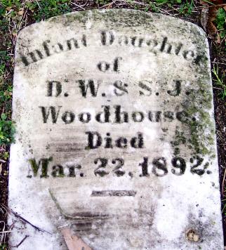 | Woodhouse, Infant Daughter | Mar. 22, 1892 | Infant daughter of D. W. & S. J. Woodhouse | |