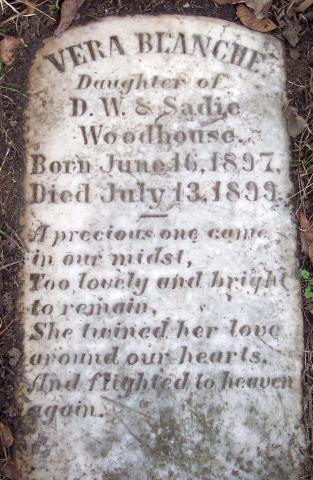 | Woodhouse, Vera Blanche | June 16, 1897 | July 13, 1899 | Daughter of D. W. & Sadie Woodhouse |