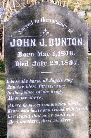 | Dunton, A. B. | Nov. 1, 1814 | June 24, 1897 | Our Father - By his two devoted Daughters |