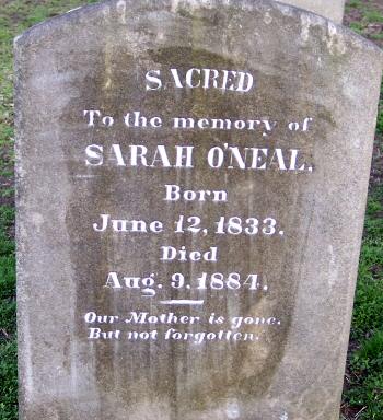 | O'Neal, Sarah | June 12, 1833 | Aug. 9, 1884 | Our Mother.... |