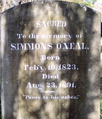 | O'Neal, Simmons | Feby 10, 1823 | Aug. 23, 1891 | |