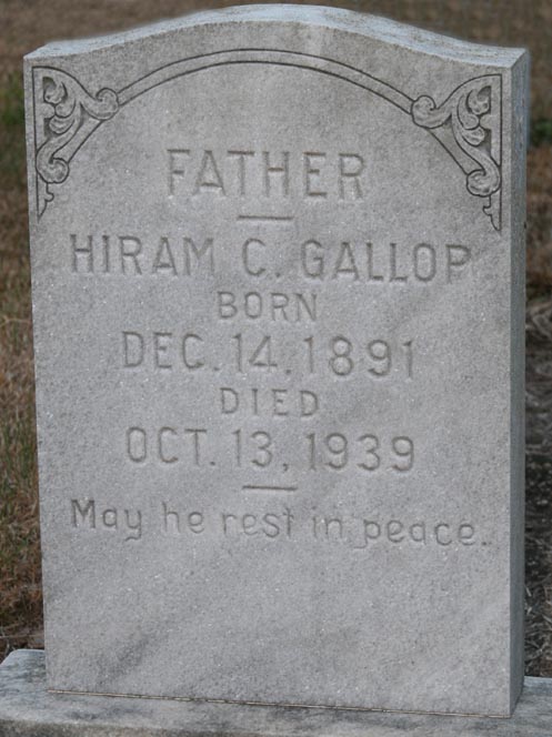 | Gallop, Hiram C. | Dec. 14, 1891 | Oct. 13, 1939 | Father - May he rest in peace. |