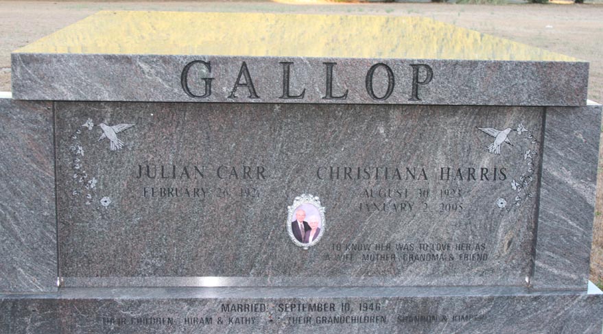 Their Children: Hiram & Kathy; Their Grandchildren: Shannon & Kim [Double with Julian Carr Gallop] [see tombstone photo] [see obituary] |