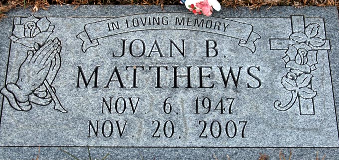 | Matthews, Joan B. | Nov. 6, 1947 | Nov. 20, 2007 | In Loving Memory [see obituary] |