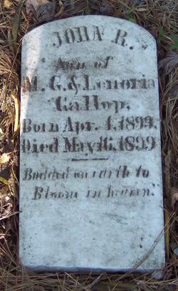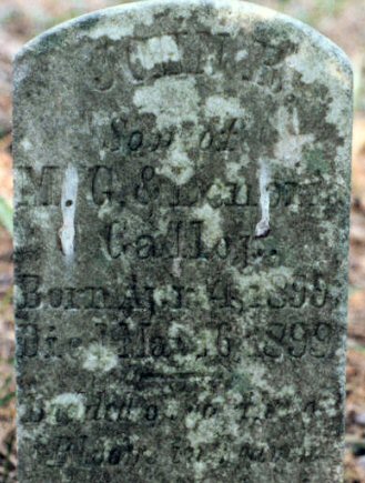 | Gallop, John R. | Apr. 4, 1899 | May 16, 1899 | Son of M. G. & Lenoria Gallop [Foot Marker] [1989 photo] |